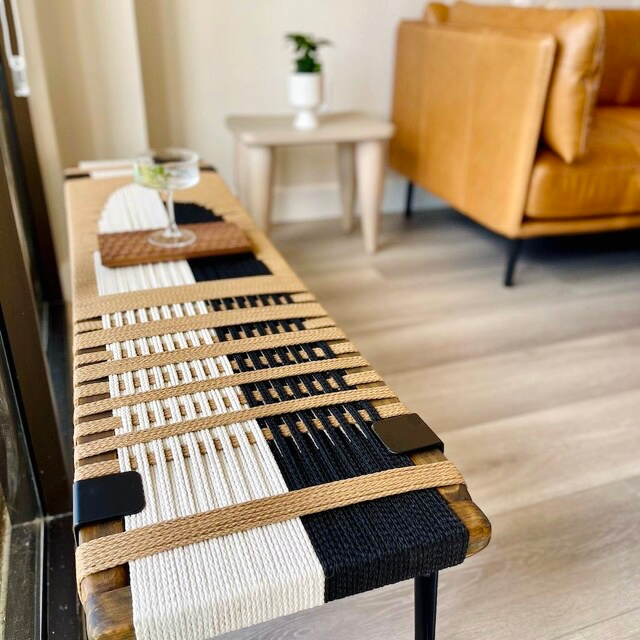 Every piece is meticulously woven by hand, creating a durable, unique finish. Our process creates a textured design pattern that ensures your bench is truly one-of-a-kind for your space
