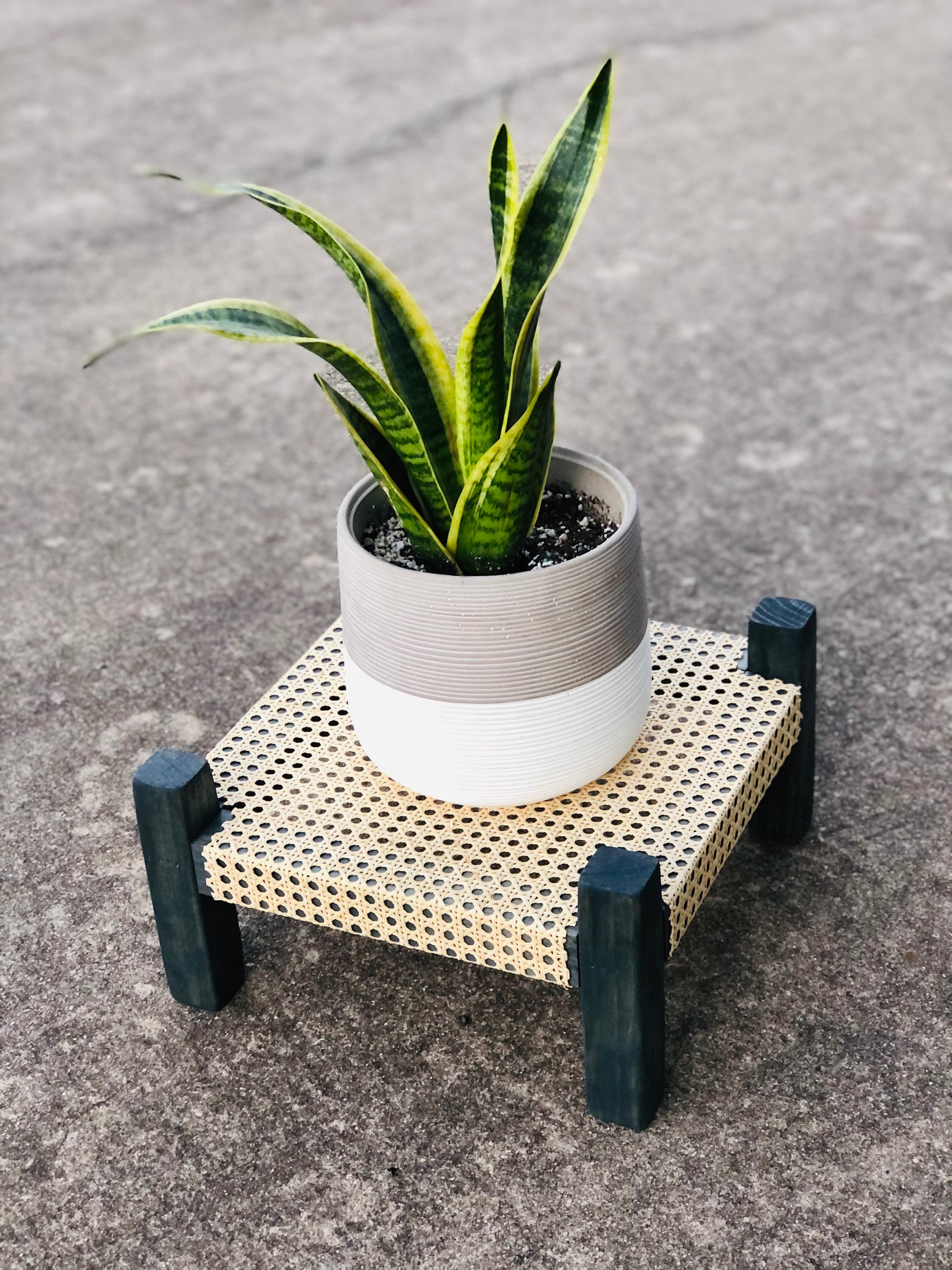 Mid-Century Modern Style Indoor Plant Stand With Cane Webbing