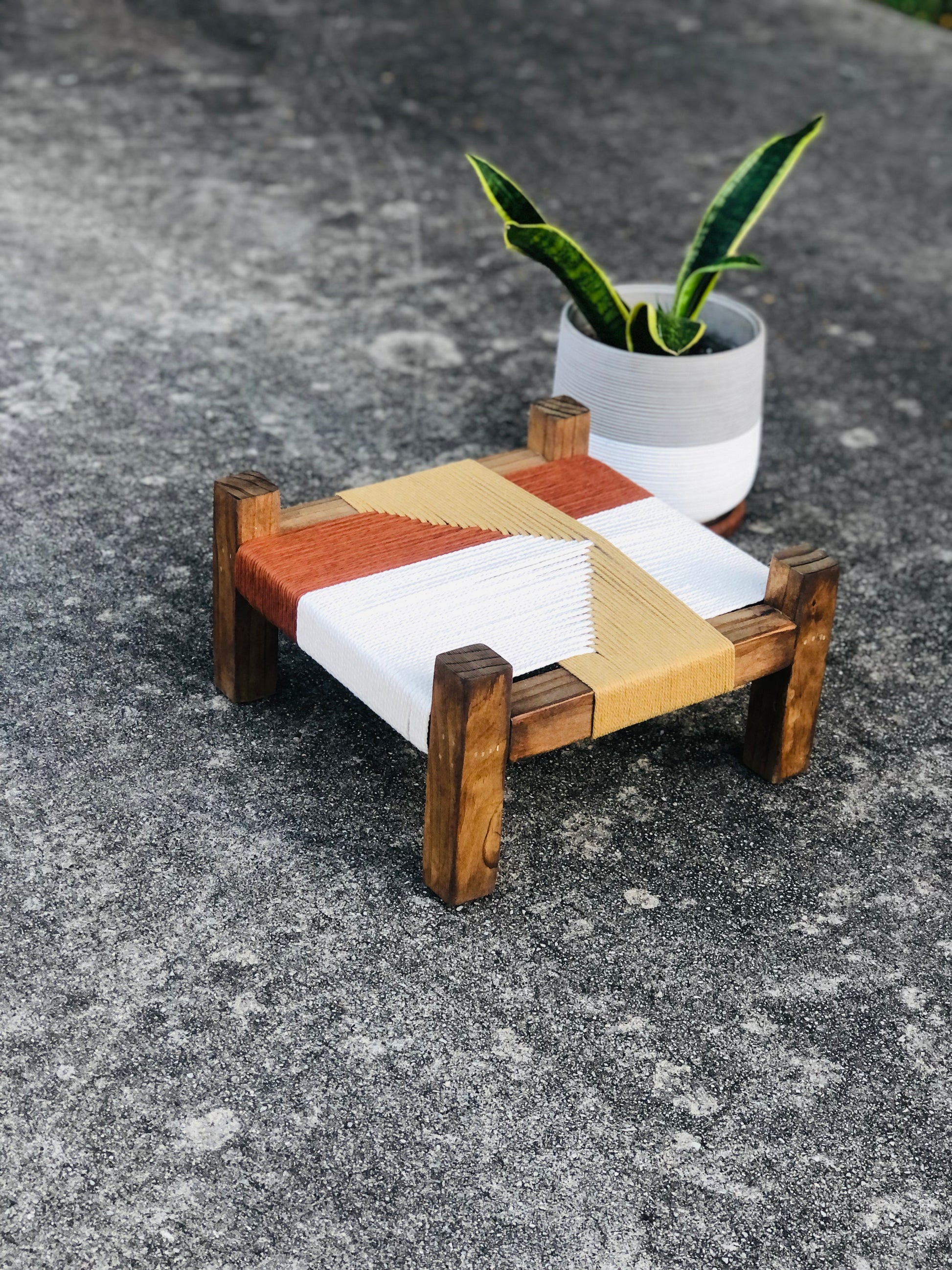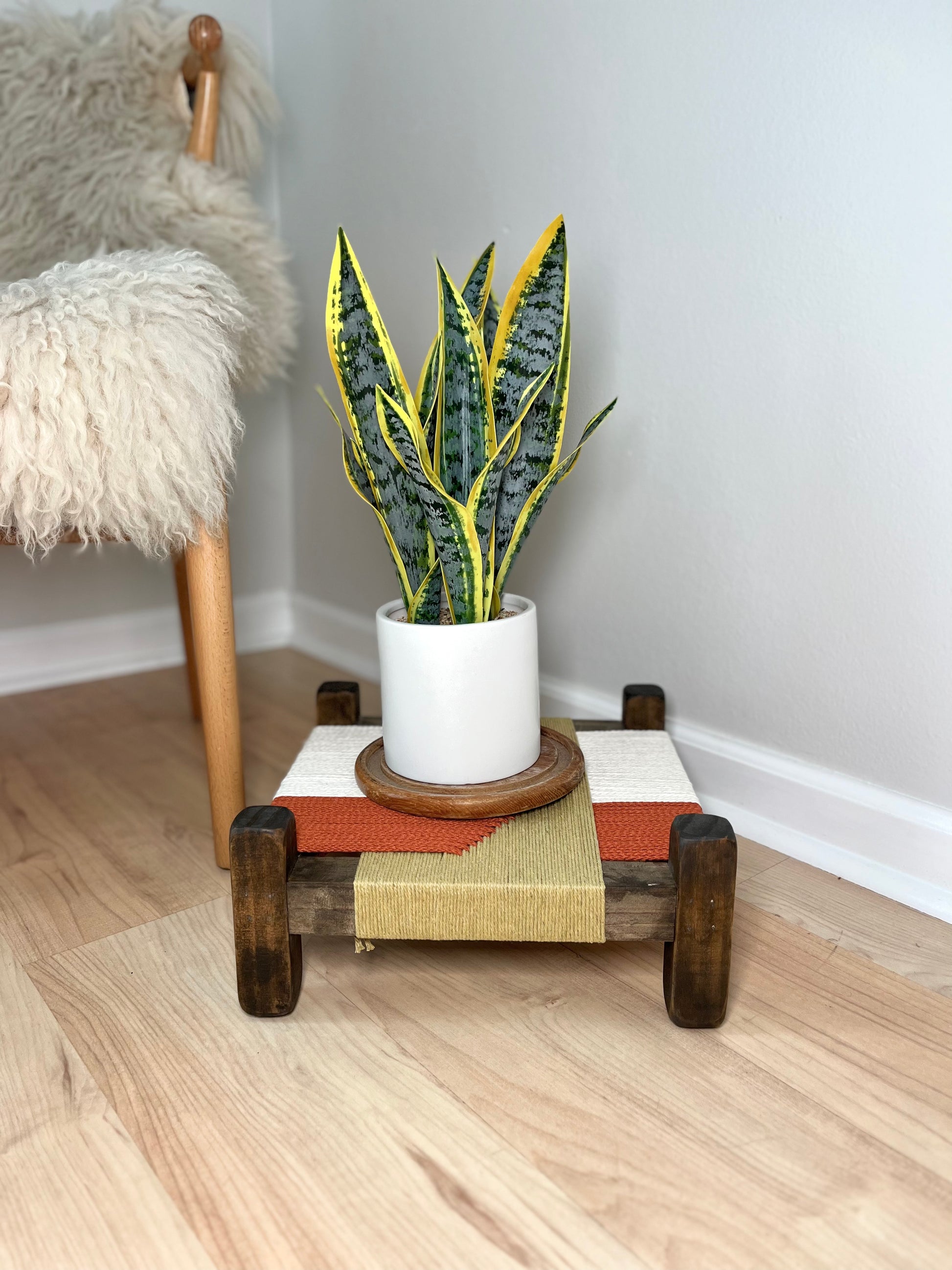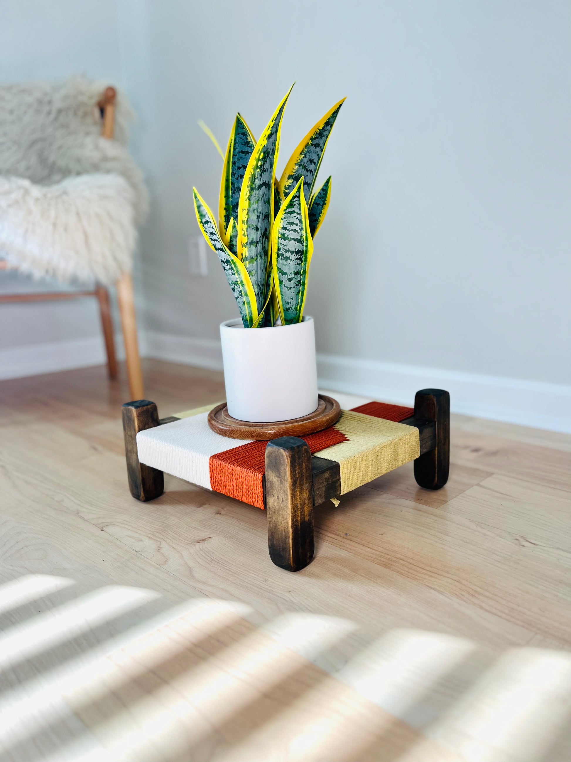 Mid-Century Modern Style Woven Indoor Plant Stand