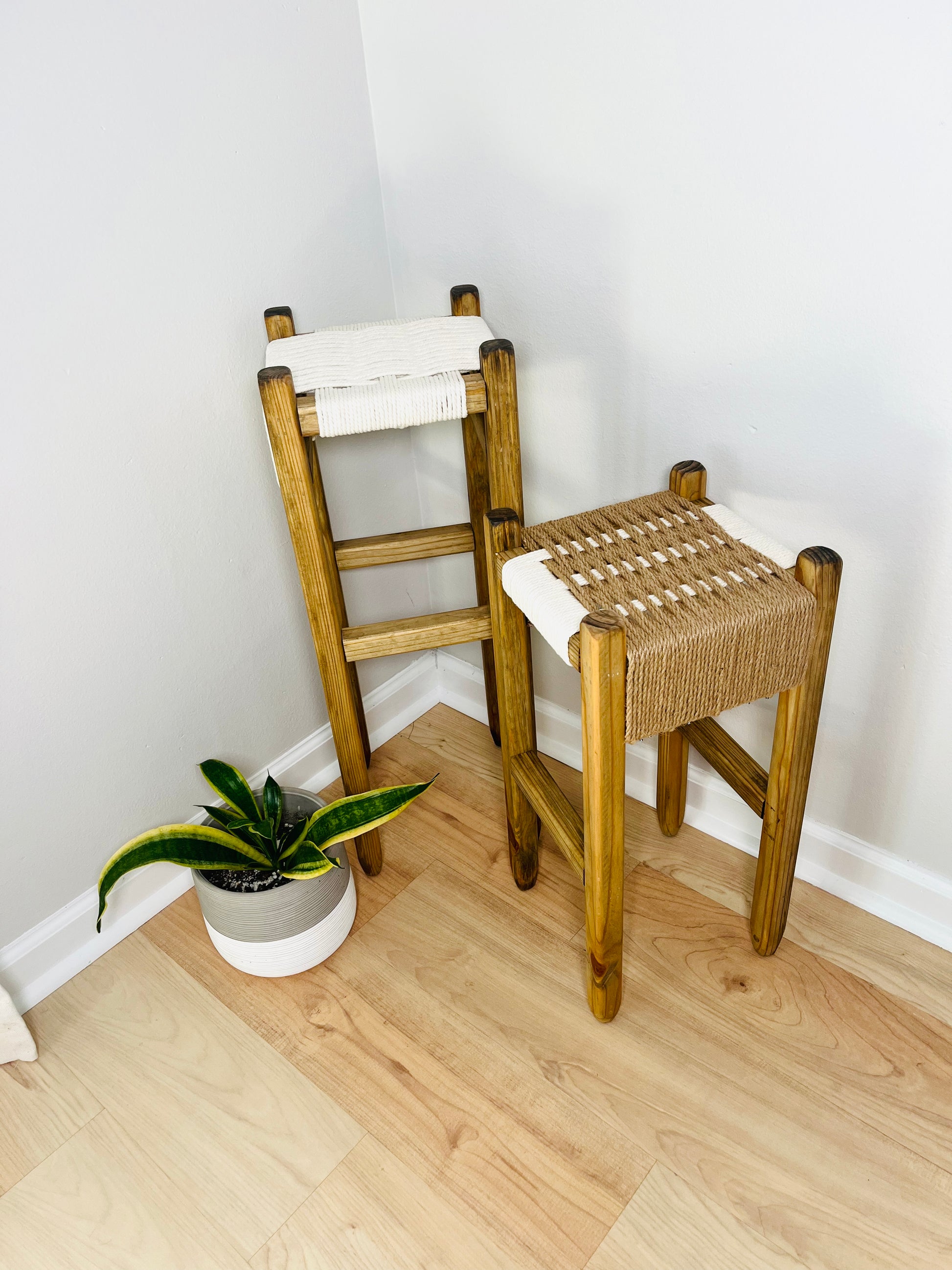 Mid-Century Modern Style Woven Indoor Plant Stands (tall set of 2)